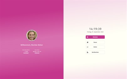 Stellen Sie Ihren Rechner zum Beispiel im Gemeinschaftsraum auf und Ihre Mitarbeiter können Kommen, Gehen und Pausen nach Eingabe Ihrer persönlichen PIN schnell und einfach in Echtzeit erfassen.