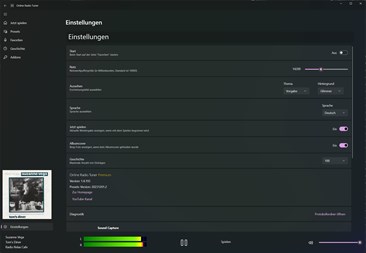 --------- NOTIZ: ---------------- Die kostenlose Version bietet nur eine kleine Auswahl an Voreinstellungen und einen begrenzten Funktionsumfang. Mit der Premium-Version erhalten Sie: - Alle Voreinstellungen - Möglichkeit, Sender als Favoriten zu speichern - VU-Meter - Geschichte der gespielten Lieder/Sender - Themenauswahl