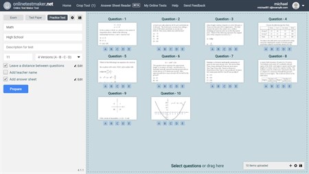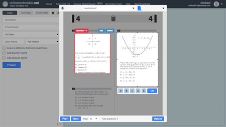 Convert questions to test paper in PDF format. Includes all grading tools for teachers. Printable, publish online, crop tool, OMR and more.