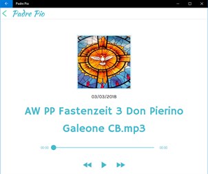 In dieser App werden jeden Tag Gedanken des Hl. Pater Pio und Msgr. Pierino Galeone veröffentlicht. Msgr. Pierino Galeone war während über zwanzig Jahren ein Zeuge des Lebens von Padre Pio. Als sein geistlicher Sohn durfte er den heiligen Pio in der Messe, bei Gesprächen, beim Gebet und in seinen Leiden erleben. Er gründete das Säkularinstitut Servil della Sofferenza.