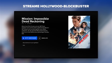 Hollywood-Blockbuster, mit denen jeder Abend zum großen Kinoabend wird, mit neuen und exklusiven Premieren und hunderten von Tophits und preisgekrönten Klassikern wie Mission: Impossible – Dead Reckoning, Yellowstone und Tulsa King.