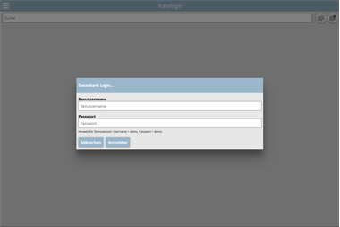 Demo-Login: - Username: demo - Passwort: Bitte beachten Sie, dass Passwort muss leer sein!