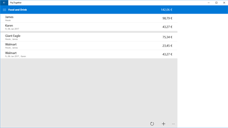 - Keine Begrenzung von Datensätzen - Synchronisation zwischen Desktop und mobiler App - Andere User der App können zu einer eigenen Ausgabenliste eingeladen werden - Private Ausgabenlisten - Gegenüberstellung der Gesamtausgaben aller Teilnehmer einer Ausgabenliste - Ausgabenlisten können zurückgesetzt werden (z.B. am Monatsende) - Beim Zurücksetzen einer Ausgabenliste kann optional der Übertrag mit übernommen werden