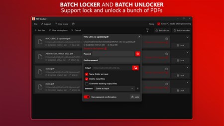 Password-protect PDF to secure your sensitive data and decrypt your data back easily. ???? Encrypt and decrypt multiple PDF at once. There's no limit to how many PDF you can encrypt. ???? All processing is performed locally on your computer where your PDF remain safe and private. Enjoy peace of mind when storing sensitive data or securely sharing data.