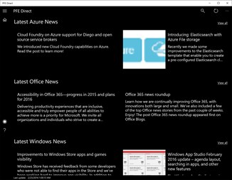 Stay up to date with the latest blogs from Microsoft Premier Field Engineers covering all Microsoft technologies with a Windows 10 Universal App! Microsoft Premier Field Engineers act as the primary onsite technical contact, providing customer visibility, advanced technical troubleshooting support and problem resolution for corporate and government customers, including issues escalated to the highest levels of management. These blogs are from the field and offer advanced troubleshooting and insight into Microsoft technologies. As an extra, the app also includes the latest news from Azure, Office, Microsoft, Xbox, and Windows providing a single source for all things Microsoft.