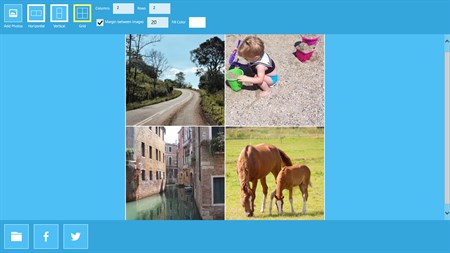 Using PhotoJoiner is very simple, just select the photos you want to join, select how you want to join them horizontally, vertically or in a grid and save the joined image on your computer or share it directly onto Facebook or Twitter.