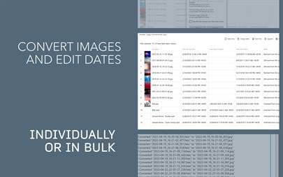 Change dates: -Change date taken values for image files (one at a time or in bulk) -Change media creation dates for video files (one at a time or in bulk) -Derive date values from file names -Derive date taken values from file last modified date -Compatible image input file formats: JPEG, JPG, PNG and HEIC -Compatible video input file format: MP4
