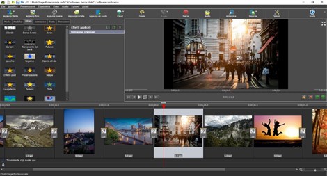 PhotoStage è un creatore di slideshow completo ricco di strumenti e funzionalità. Trascina facilmente immagini, video e file audio nel programma. Puoi migliorare le tue foto e i tuoi video in Photostage, con semplici modifiche come ritaglio, dissolvenza e zoom o modifiche più dettagliate modificando la luminosità, la saturazione, il colore e altro. Visualizza in anteprima tutti gli effetti in tempo reale. Photostage offre ottime funzionalità audio che ti consentono di trascinare e rilasciare audio, registrare narrazioni e modificare l'audio con dissolvenze, loop e altro ancora. Se non hai tempo per progettare un'intera presentazione, puoi utilizzare Creazione rapida che crea istantaneamente una presentazione. Invia il tuo progetto finito online o salvalo sul dispositivo.