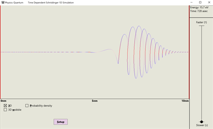 Physics: Quantum simulates the quantum mechanical wavefunction of an electron. Unlike other simulations that only calculate stationary states of a "particle in a box", this app simulates the change in time for a one-dimensional wavefunction.