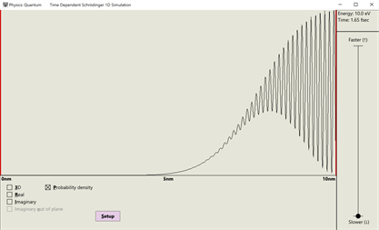 You can set a number of starting conditions, such as a superposition of particle-in-a-box states, or a highly localized wavepacket. Then start the simulation to witness the changing wavefunction in a quantum well.