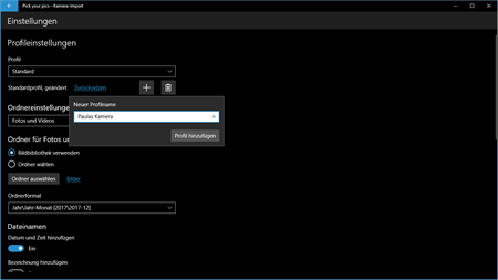 Möchtest du die Fotos und Videos gemeinsam speichern oder sollen die Videos deiner Videokamera in einem gesonderten Ordner abgelegt werden? Vielleicht möchtest du die Fotos von der Kamera deines Kindes an einem anderen Ort speichern? Erstelle Profile mit unterschiedlichen Kopiervorgaben. Die App wird das jeweils zuletzt gewählte Profil für deine Kamera zur Auswahl vorschlagen.
