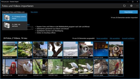 Die App verwendet zum Importieren die Windows-Systemdienste. Damit arbeitet sie sehr zuverlässig und ist auf Geschwindigkeit optimiert. Sie kann mit Paaren von Dateien, wie RAW + JPEG, sowie mit segmentierten Videodateien umgehen.