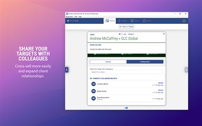 2. SHARING. Collaborate with colleagues to close more business deals. Easily cross-sell, expand client relationships, and gain better visibility into your business opportunities.