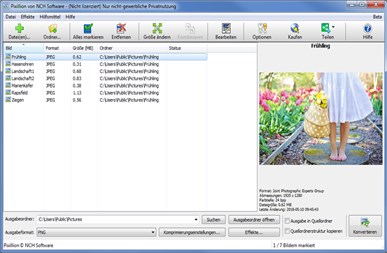 Pixillion ist einer der stabilsten, benutzerfreundlichsten und umfassendsten Konverter für Bilddateien. Importieren Sie schnell die gewünschten Dateien und wählen Sie ein neues Format. Vor dem Konvertieren können Sie in Pixillion eine Vorschau der von Ihnen vorgenommenen Größenänderung oder hinzugefügten Wasserzeichen anzeigen. Sie können dann Ihre Bilder aus über 40 Dateitypen in das von Ihnen benötigte Format konvertieren, einschließlich JPG, PNG, GIF, HEIC, BMP, ICO, PSD und PDF. Wenn Sie mehrere Dateien gleichzeitig konvertieren möchten, kann Pixillion alle Ihre Dateien gleichzeitig stapelweise konvertieren.