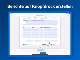 Keine Nachbearbeitung im Büro: Erstellen Sie detaillierte und frei gestaltbare PDF-Berichte und exportieren Sie Ihr Bautagebuch, Ihre Bauzeichnung, Baupläne, Mängellisten oder ganze Abnahmeprotokolle einfach auf Knopfdruck. Profitieren Sie von einem effizienten Berichtswesen für Ihr Bauprojekt! Einfache und rasche Bauplanung für Architekten, Ingenieuren, Bauarbeiter und Co. auf der Baustelle und im Büro!