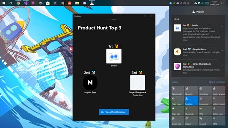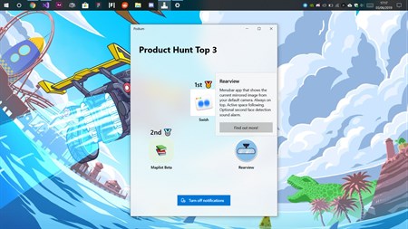 With Podium, you receive notifications every 2 hours, showcasing the top 3 products on Product Hunt. This allows you to see how the feed changes over time without having to open the app but if you do get curious, you can click on a notification and get taken straight to its product's post on Product Hunt!