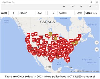 Since the beginning of 2021 over 600 civilians have been murdered by police officers in the USA. This is an app showing over 9000 cases, as far back as 2013!