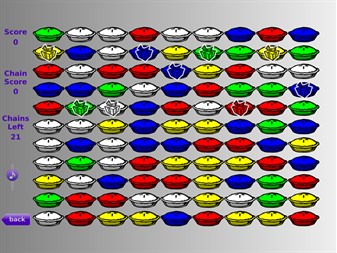 Pop Pies! is a simple yet addictive game. Explode chains of adjacent like-colored pies for points. The bigger the chain, the more points you get. The rest of the pies then settle in to fill in the gaps, hopefully creating more chains for you to pop. Some pies have gift boxes on them; pop as many of those in the same chain as possible for more points or special items. Start with a board of 99, 208, or a whopping 340 pies! How many points can you get before there are no more chains left?
