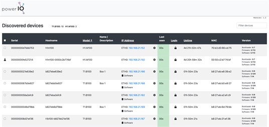 Der Device Manager ist eine Benutzeranwendung, die Ihr Netzwerk nach powerIO-Geräten durchsucht. So können sie schnell und einfach Konfigurationen in Ihrem Netzwerk vornehmen. Mit diesem Tool können Sie auch mehrere Geräte gleichzeitig aktualisieren, ohne für jedes Gerät die Weboberfläche aufrufen zu müssen.