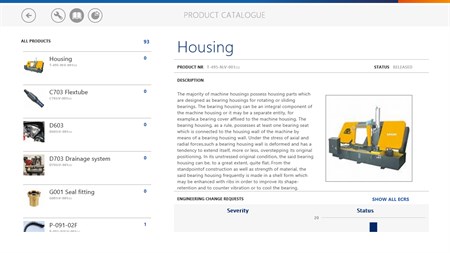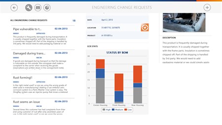 The Product Engineering app allows Microsoft Dynamics AX 2012/Microsoft Dynamics NAV 2013 R2 users to view engineering change requests and released products from Microsoft Dynamics AX 2012/Microsoft Dynamics NAV 2013 R2. It provides means to create new change requests, including notes, photos and post them to Microsoft Dynamics AX 2012/Microsoft Dynamics NAV 2013 R2.