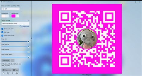 Save QR code: - Save QR code in JPEG, JPG, PNG, GIF, TIFF, BMP, JPEG-XR, HEIF (Windows 11), HEIC (Windows 11) picture formats. - Visually change QR code size and save in desired resolution.