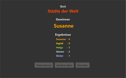 EINSTELLUNGEN Vor dem Quizstart können Sie folgendes einstellen: Teilnehmerzahl, Rundenzahl, Antwortzeit, etc.