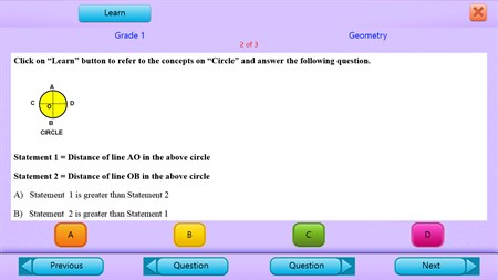 A) Learn Mode: In the learn mode, you click on the "concept text", learn the math concepts and answer multiple choice questions. If you answer wrong, the correct answer is displayed which reinforces learning.
