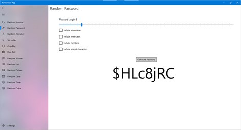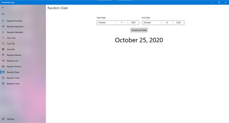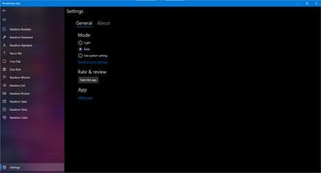Randomizer App supports all native features of Windows 10 like Light and Dark theme.