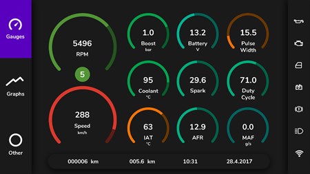 ★ Pixel Perfect™ Erstellung von Dashboards, begrenzt durch Ihre eigene Imagination. ★ Super hoch Qualität Visuals und animierte Spuren. ★ Galerie mit vielen herunterladbaren kostenlosen und Premium-Dashboards und Gizmos. ★ Lesen und Löschen von Fahrzeugfehlercodes. ★ Karte und Tempolimitanzeige. ★ Sprachbefehle ermöglichen die freihändige Bedienung. ★ Momentaner und durchschnittlicher Kraftstoffverbrauch. ★ Performance-Meter 0-60, 0-100, 0-200, 60 Fuß, 1/8 Meile, 1/4 Meile und Meile. ★ Leistung- und Drehmomentmessung. ★ Ein leistungsfähiger Auslöser-> Action-System. ★ Erstellen von Alarmen und visuellen Effekten mit konfigurierbarer Auslöser. ★ Ein Rundenzähler mit dutzenden von automatisch erkannten Rennstrecken.