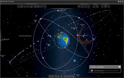 - Intuitive Einstellung von Beobachtungszeit und -datum für einfache Visualisierung astronomischer Vorgänge, die eigentlich Tage, Monate oder Jahre dauern