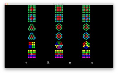 Diese APP enthält einige einfache und interessante Farbrätsel.Jeder hat ein paar Modi und Ebenen.Alle müssen nachdenken und wählen. Unified Color: Klicken Sie, um alle Polygone die gleiche Farbe haben zu lassen.Weitere Polygone ändern die Farbe, wenn Sie auf eins klicken.Es gibt drei Formen (Dreieck, Quadrat, Sechseck) und jeder hat einige Muster und sechs Ebenen. Rotierende Farbe Puzzle: Klicken Sie, um Farbblöcke zu drehen, um sie an die richtige Stelle zu setzen.Es gibt drei Formen (Dreieck, Quadrat, Sechseck) und jeder hat sechs Ebenen. Zyklische Farbblöcke: Schieben Sie die Farbblöcke kreisförmig, um die Farbe horizontal oder vertikal und horizontal zu erhalten.Einschließlich Speichermodus, der die Farbe beim Gleiten verdeckt.