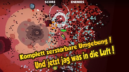 Entdecke verrückte Powerups, bewege dich durch komplett zerstörbare Umgebungen oder vergrabe dich in verschiedenen Kartenabschnitten, um Überraschungsangriffe auszuführen. Zerstörte Objekte regenerieren sich, sodass du immer auf Draht bleiben musst. Aber die Zeit heilt nicht alle Wunden!