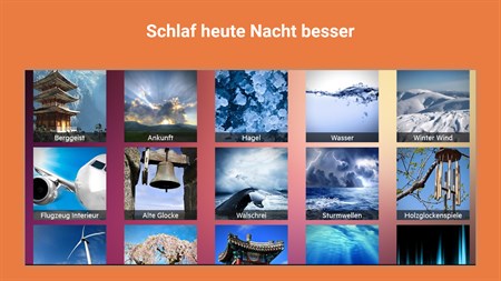 Genießen Sie tolle Funktionen ************************************* - 85 hochwertige Umgebungsgeräusche und Melodien - Erstellen Sie Ihren eigenen Ambiente-Mix, indem Sie Klänge und Musik zum Entspannen kombinieren - Standardmischungen für einen einfachen Start - Timer zum Einstellen der Dauer Ihrer Entspannungssitzung - Schöne Schnittstelle mit hochwertigen Bildern
