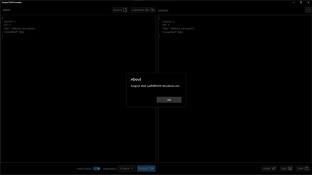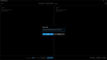 Simple JSON Formatter is a windows UWP app for JSON formatting / prettify. This app allows to fetch JSON data directly from URL or local disk for processing. Output can be shared, saved to local or copied to clipboard.