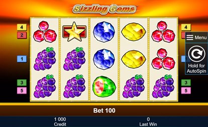 See the casino heat up when you play Sizzling Gems. Here, the fruits aren’t to be eaten as they are adorned with sparkling gems that will fill your account with great riches. In Sizzling Gems the 7s are encrusted with rubies and the stars are made from the purest, light yellow diamonds. To reap shiny rewards all you have to do is to arrange the fruits made from gems in the right order and decorate it with a sparkling 7 or a star and a basket full of winnings is yours! The aim of Sizzling Gems is to land 5 matching symbols side by side along 5 win lines. The winning patterns run from left to right. The Red 7 (Joker symbol) substitutes all symbols except the Star (Scatter symbol). The Scatter symbol replaces any symbol except and complements your winning combinations.