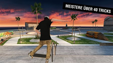 VIELZAHL AN FUNKTIONEN •Alle Geräte der neuesten Generation werden unterstützt und die App wurde für hochauflösende Displays optimiert. •Spiele im Online-Mehrspielermodus gegen Deine Freunde oder andere Skater. •Neues und komplett anpassbares Steuerungssystem. Alles lässt sich verändern! •Lerne über 40 einzigartige Tricks und erstelle Hunderte von Kombinationen. •Es warten riesige Skateboard-Locations auf dich, darunter der OC Ramps Skatepark, Venice Beach, Chinatown, San Francisco, Moskau, ein Naturmuseum, ein Entwässerungsgraben und ein mittelalterlicher Platz mit einer riesigen Rampe. •Passe deinen Skater oder dein Board mit tonnenweise exklusiven Inhalten an, darunter zahlreiche Outfits, Schuhe, Achsen und Räder von lizenzierten Herstellermarken. •Spiele das Spiel regelmäßig, um Erfahrungspunkte zu sammeln und die Attribute deines Skaters zu verbessern. Schließe alle Levelaufgaben für Greg ab, um sein maximales Potential zu erreichen. •Umfangreicher Soundtrack mit Songs von Chaos Delivery Machine, We Outspoken, Voice of Addiction, Templeton Pek, Sink Alaska, Pear, Closer and Melodic in Fusion. •Du kannst per In-App-Kauf besondere Gegenstände und Erfahrungspunkte kaufen. •Verfügbare Sprachen: Englisch, Französisch, Deutsch, Italienisch, Spanisch, Russisch, Japanisch, Koreanisch, Portugiesisch und Chinesisch.