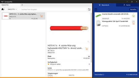 Az alkalmazás legfontosabb funkcióinak áttekintése: - Gyors és könnyed rendelésleadás útközben - Gyors termékkeresés keresőszavak és szűrések használatával - Könyvjelzőkkel a gyakran szükséges termékek elmenthetők - Vonalkód-szkenner segítségével a cikk-keresés a terméken vagy Sonepar szóróanyagban feltüntetett vonalkódok beolvasásával gyors és egyszerű - Termékeink offline állapotban elérhetők, kereshetők - Online internetkapcsolat megléte esetén készletmennyiségek, vevőre szabott árak is elérhetők, valamint elküldhető a megrendelés - Mobiltelefonon és táblagépen egyaránt a kijelzőhöz optimalizált verziót biztosítunk