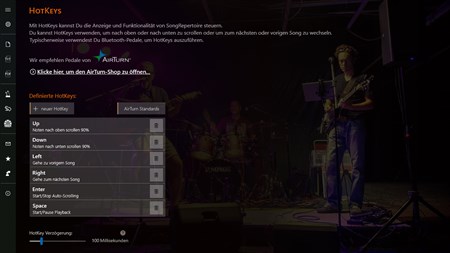 Verbinde SongRepertoire mit anderen Geräten - Verwende externe Pedale, um SongRepertoire zu steuern (z.B. Scroll-Down, nächster Song, Playback starten, ...) - Verbinde Midi-Geräte und schicke Kommandos direkt aus SongRepertoire