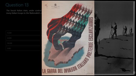 Test your knowledge of the history of the Spanish Civil War, 1936-1939 – the prelude to the Second World War. The quiz covers military, political, social and cultural aspects of the Civil War.