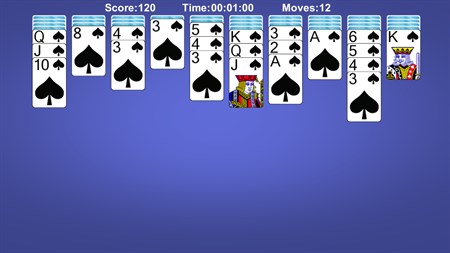 Tap or drag cards to move cards to right place quickly when playing spider solitaire. Winning Deals creat a game that have at least one winning solution. Three Mode -Easy, Medium, Hard- you can choose to train your brain.