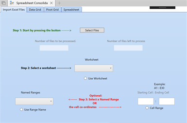 Features: 1 - The import process allows thousands of spreadsheets to be selected for consolidation. The spreadsheets all need to be in the same directory.
