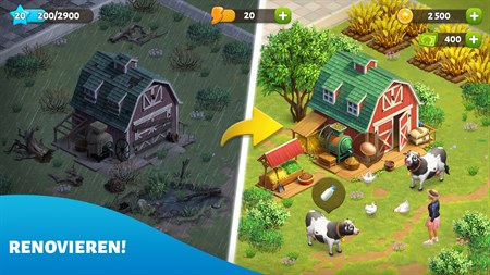 - Reise, baue, ernte, löse Rätsel und finde Freunde in der unvergleichlichen Welt von Spring Valley – werde zum Helden deiner Geschichte! - Errichte den besten aller Bauernhöfe! Baue Obst und Gemüse an, züchte Tiere, stelle Güter für die Einwohner der Stadt und für Expeditionen her und entdecke neue Rezepte! - Erforsche und löse die Mysterien und Geheimnisse, die sich in der Familienvilla verbergen und gestalte sie zu einem wundervollen Zuhause mit üppigem Garten und faszinierendem Ambiente! - Triff all die Charaktere! Der tapfere Sid und seine Katze Kapitän Klöpschen, die hübsche Madeline, der gutherzige Matthew und seine charismatische Schwester Tiffany können deine Ankunft kaum erwarten! - Schließe Freundschaft mit Charakteren im Spiel! Verabrede dich oder hilf ihnen, um Geschenke zu erhalten und mehr von der Geschichte zu erfahren! - Begib dich auf eine Reise mit deinen neuen Freunden und entdecke einzigartige und ausgefallene Orte auf dem Land, während du die Schönheit der Landschaft auf jedem Abenteuer genießt! - Löse spannende Rätsel auf Expeditionen, renoviere Gebäude, in denen neue Geheimnisse warten, und sammle seltene Ressourcen!