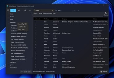 In addition to basic database management features, the application also provides advanced features such as the ability to create new databases, export data, and execute SQL queries. The SQL query feature allows users to perform complex operations on the database, including filtering, sorting, and aggregating data.