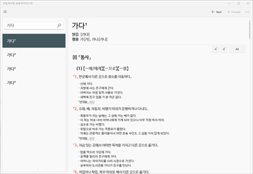 Standard Korean Language Dictionary is a Korean-Korean dictionary created by National Institute of Korean Language. This app allows you to search directly without having to connect to the browser.