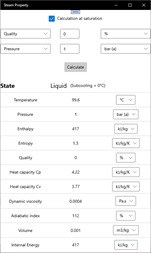 Each calculation is based on IAPWS-IF97 formulations, with high precision, even close to the critical point and high pressure, as major professionnal app.