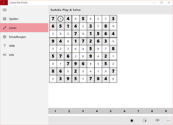 Einfache Bedienung mit Hilfe Funktion, optional kann der Schwerigkeitsgrad durch die Anzahl der vorgegebenen Ziffern bestimmt werden. Lösen Sie auch schwerste Sudokus z.B. aus der Tageszeitung.