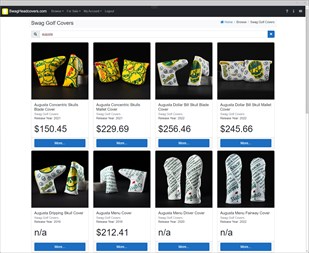 The SwagHeadcovers.com app allows users to browse headcovers, accessories, apparel and putters and view information such as release year and quantity as well as estimated after-market values.