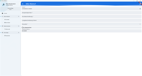 Arbeit mit Stammdaten: Automatische Synchronisation von Datenlisten wie Kunden, Kontakte, Artikel oder Projekte; im Offline-Betrieb verfügbar. CRM-Workflows: To-Dos von unterwegs erstellen, Rückrufe weiterleiten, Servisierung vor Ort oder Lieferscheine direkt vor Ort erfassen inklusive Unterschrift; Anzeige von offenen und abgeschlossenen CRM-Fällen. Kunden in der Nähe: Anzeige von allen Kunden in der Nähe auf einer Karte. Durch Klick auf eine Position lässt sich die Detailansicht des Kunden öffnen, oder sofort eine Route mit der Karten-App des Geräts starten. Kalender: Alles im Überblick - Anzeige der offenen CRM-Fälle, Urlaube, Bürodienste etc. im Kalender