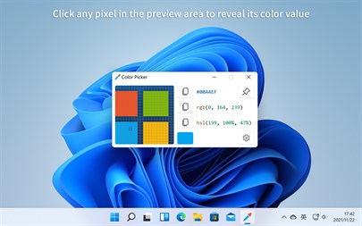 This app is a screen color picker. Drag your mouse from the preview area to the point from where you want to pick color, and the preview area will show the pixels around that point with HEX, RGB, and HSL color values of the point to the right. You can also use the copy buttons to copy corresponding color values directly.