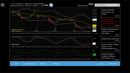 CHARTS: Die Tai-Pan App bietet Ihnen Charts mit Zeitrastern von 1-Minutencharts bis hin zu Langfristcharts auf Tagesbasis. Für die technische Analyse stehen Ihnen Indikatoren zur Verfügung.